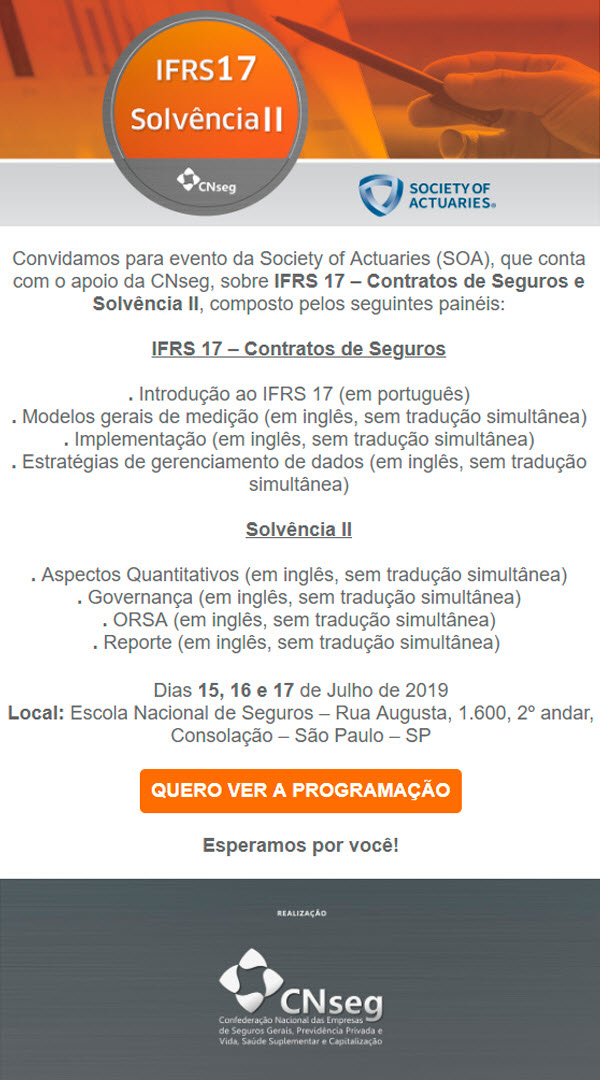Mais informações: https://eventos.cnseg.org.br/eventos/evento/ifrs17-e-solvency-II-workshop/
