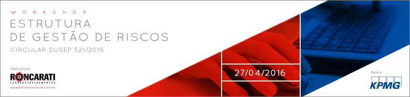 No primeiro evento do ano, a Editora Roncarati colocará em discussão um tema que interessa muito aos profissionais que atuam na área de gestão de riscos, controles internos e auditoria. Trata-se do workshop “Estrutura de Gestão de Riscos – Praticando a Circular Susep 521/2015”, que será realizado no dia 27 de abril, das 8h às 13h, no auditório da KPMG, na Rua Arquiteto Olavo Redig de Campos, nº 105, Torre A, 6º andar, Chácara Santo Antonio, em São Paulo (SP).
